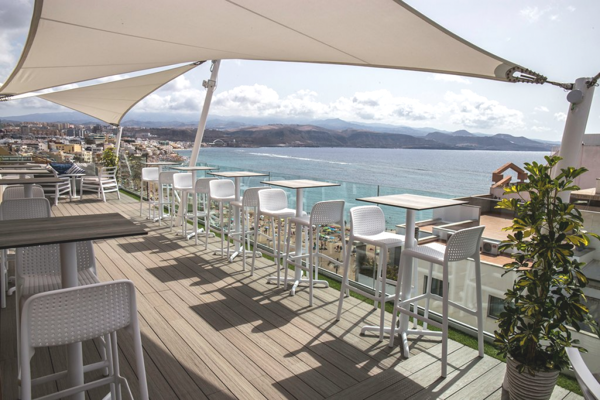 Nous vous encourageons à visiter notre Rooftop & Terrace et à déguster l'un de nos cocktails, ainsi que la vue panoramique sur La Plage de las Canteras. Un emplacement exceptionnel pour profiter des environs et du paysage de Gran Canaria.